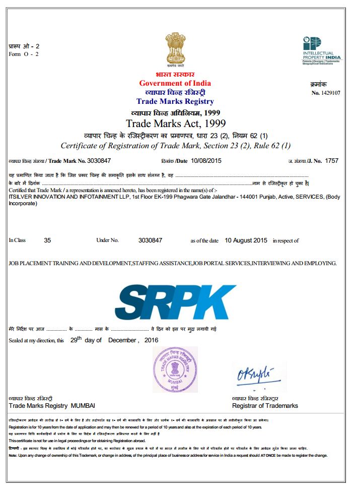 SRPK® Wholly owned Service and Registered Trademark of Itsilver® Innovation and Infotainment Llp is affiliated, associated, alliance and registered with all essential Government Authorities |